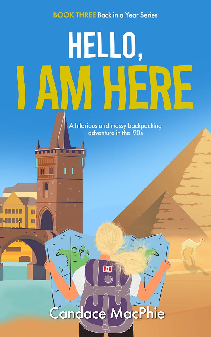 A: Hello I am Here? is the third book of my five book Back in a Year Series. The true story of a young woman backpacking around the world in the 1990s.